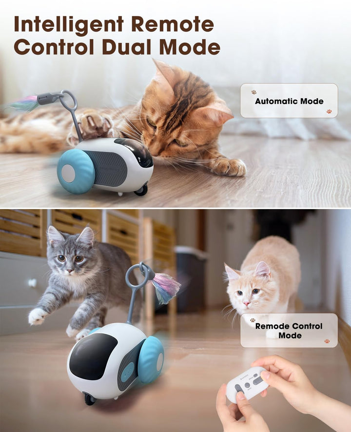 - Interactive Remote Control Mode: Our smart Interactive cat toys have two modes to choose from, in smart mode, the toy moves, spins and flips on its own to keep your feline friend company while you are busy working, traveling or partying. In remote control mode, you can actively engage with your cat using the remote control for added fun and interaction