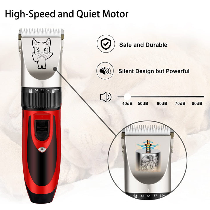 Dog Grooming Kit Clippers, Low Noise, Electric Quiet, Rechargeable, Cordless, Pet Hair Thick Coats Clippers Trimmers Set, Suitable for Dogs, Cats, and Other Pets(Red)