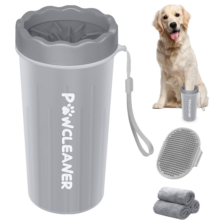 Comotech Dog Paw Washer with Bath Brush - Large, Grey (with 3 Absorbent Towels, Adjustable Handle for Long & Short Haired Dogs)