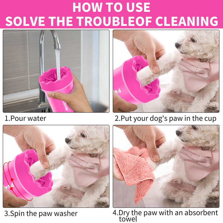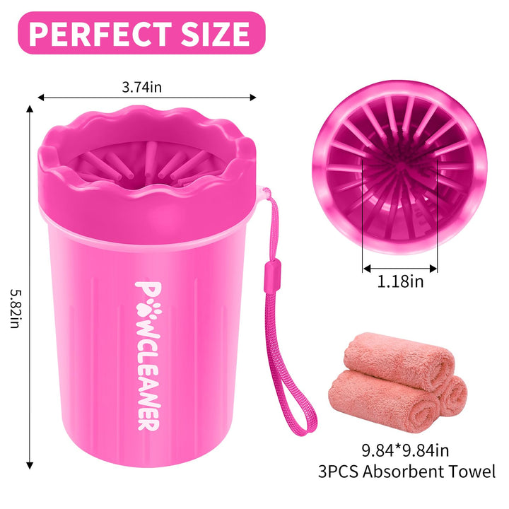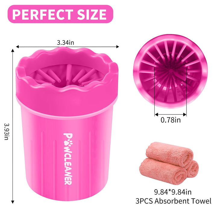 Comotech Dog Paw Cleaner, Pet Foot Washer - Quickly Clean a Muddy Paw, Soft Silicone Bristles, Suitable for Small, Medium, Large Breed Dogs, Pink (with 3 Absorbent Towel)