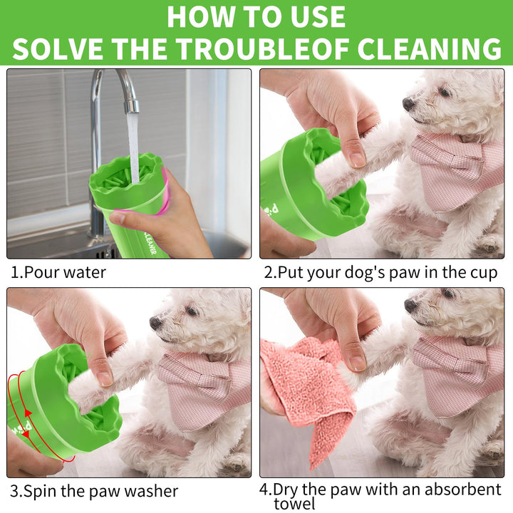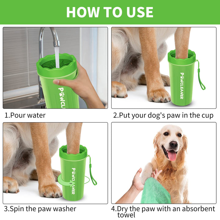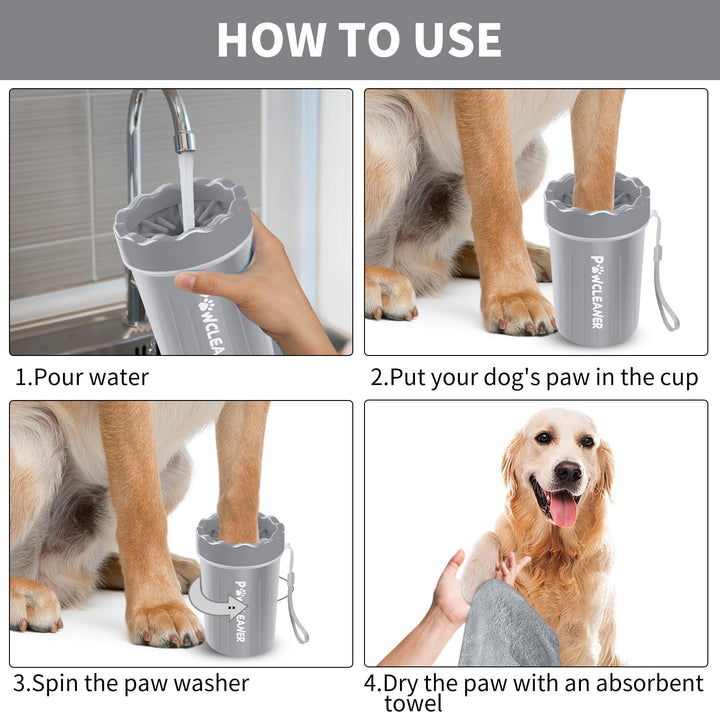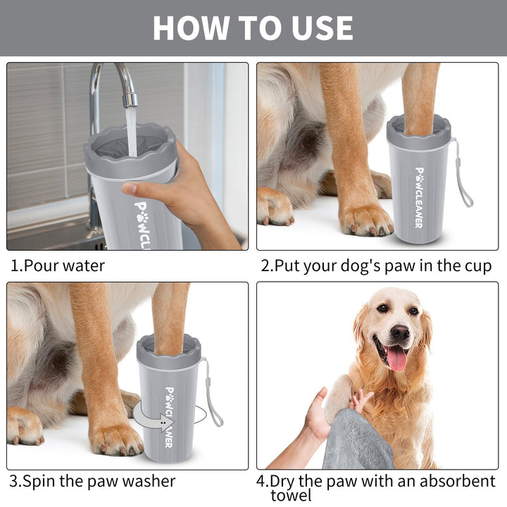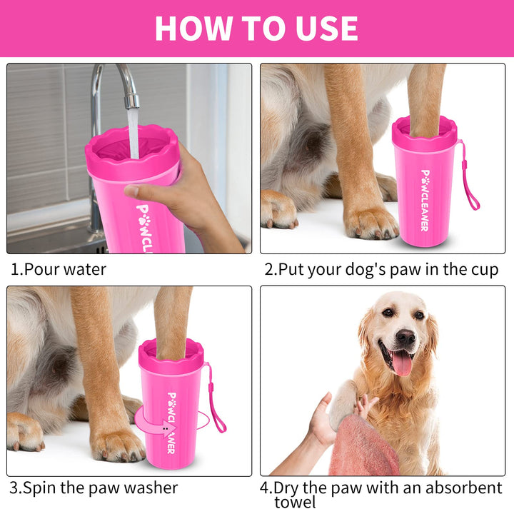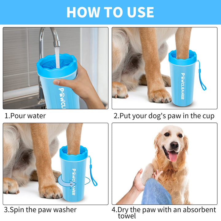- Simple and Easy Steps 1. Pour clean water into the cup 2. Put the dog's paws into the cup 3. Rotate the cup for a while to remove dirt from the paws 4. Repeat for the remaining three paws