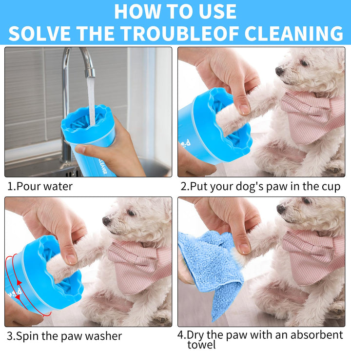 - [Perfect Gift for Pet Owners] The pet paw cleaner cup is the perfect gift for every pet owner, after they go for a walk in the park or after a hike, they will sorely need a portable dog foot cleaner to cleaning the dog paws, makes dirt from dog paws stop dirtying the house