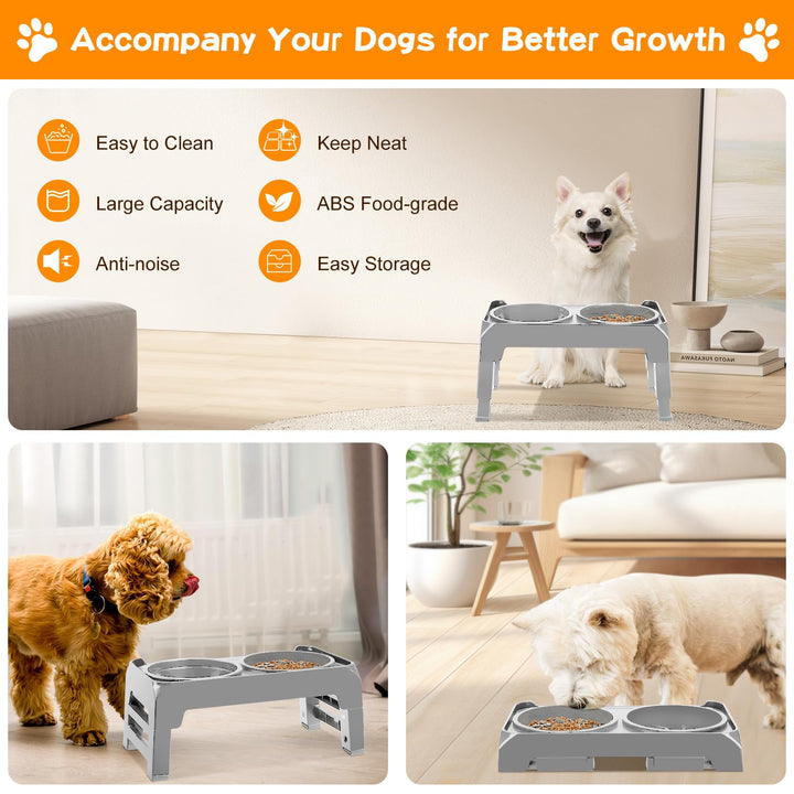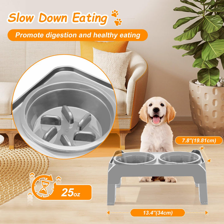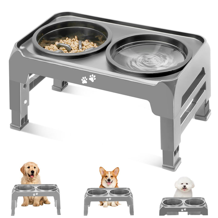 Elevated Dog Bowls 2-in-1 Slow Feeder Dog Food Bowls for Small Medium Dogs 3 Height Adjustable Raised Dog Bowl Stand Non-Slip Dog Feeder Adjusts to 2.75", 6", 7.5", Grey