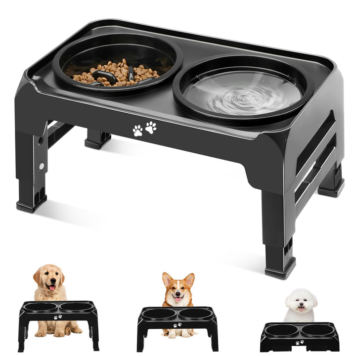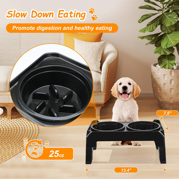 Elevated Dog Bowls 2-in-1 Slow Feeder Dog Food Bowls for Small Medium Dogs 3 Height Adjustable Raised Dog Bowl Stand Non-Slip Dog Feeder Adjusts to 2.75", 6", 7.5", Black