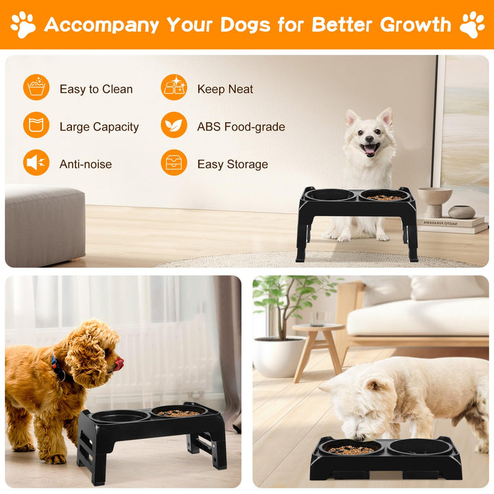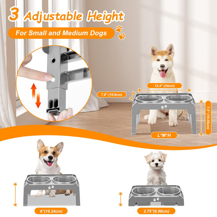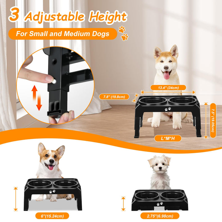 - 3 Adjustable Heights: Designed for small and medium dogs, the elevated dog bowls come in three different heights to keep your dog company. The raised dog bowls are adjustable to 2.75", 6"and 7.5" for medium and small dogs and cats.