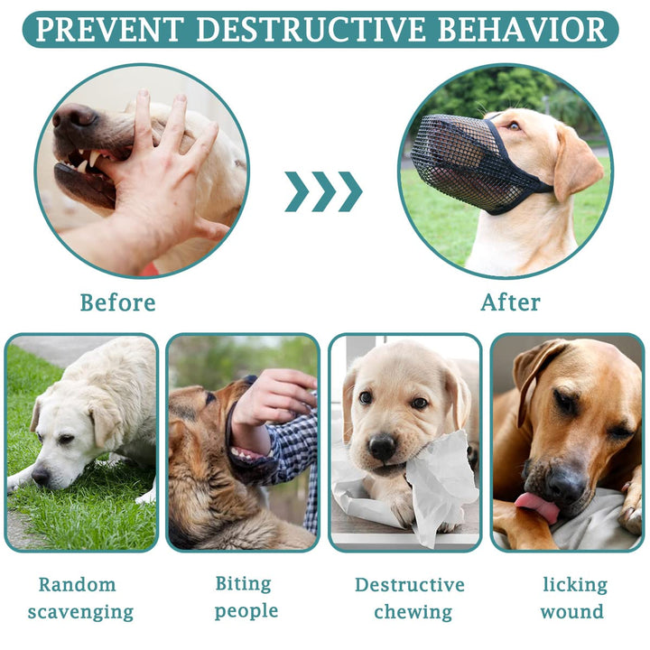 - Humane Dog Muzzle: A soft full-covered mesh panel makes the muzzle comfortable to wear, also allows your dog to breathe, and drink, and provides the best pet breathing and ventilation as normal while preventing chewing and biting