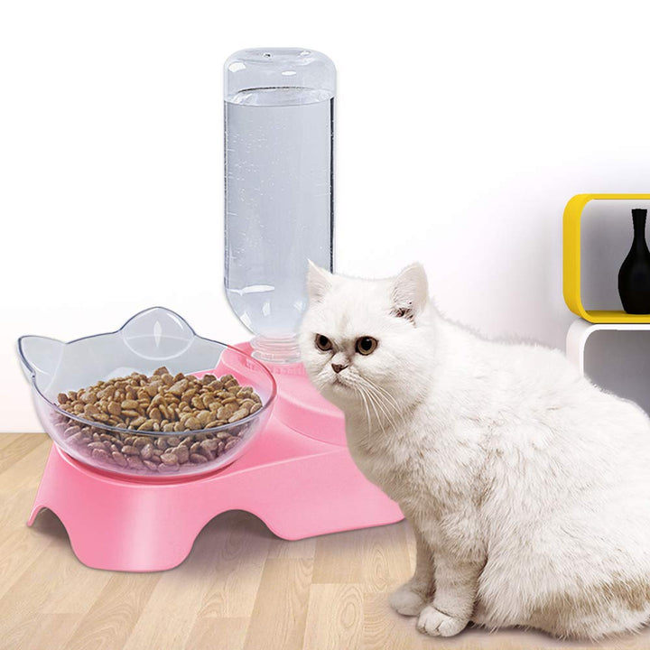 - Automatic water dispenser with food bowl:2 in 1 feeder bowl. One food bowl, one plastic bowl with automatic water bottle. It will refill the water into the dish automatically and keep the water clean whether you at home or not. Suitable for Medium and Small Pets. Your small pets will like this gift,try our special water and food bowl set for your baby cats or dogs.