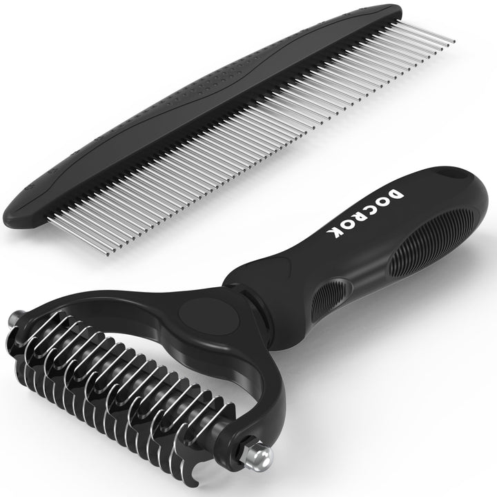 Pet Grooming Combo: Undercoat Rake, Dematting Deshedding Brush for Long-Haired Dogs and Cats, Black