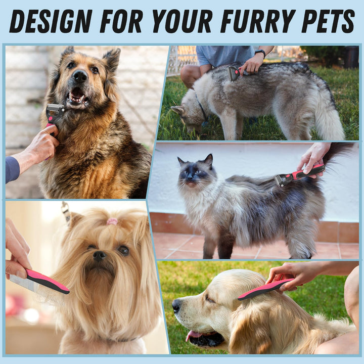 - Easy Dematting and Deshedding Tools: Our Grooming brush and comb combo help effortlessly dematting and reduces shedding. A must have dog brush for shedding, pet supplies, cat supplies, dog supplies metal comb for dogs shedding.