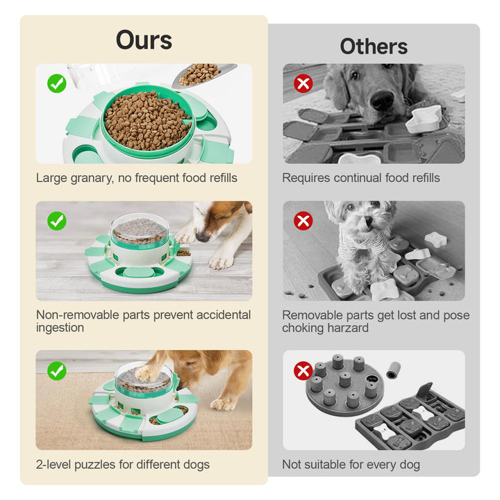- We Prioritize Safety: the dog puzzle toys are designed with your pets health in mind, made of durable food-grade PP materials. Non-removeable parts make it safe and easy to clean. And you can give puzzles toy to your dog or directly out of the box, just no assembly!!