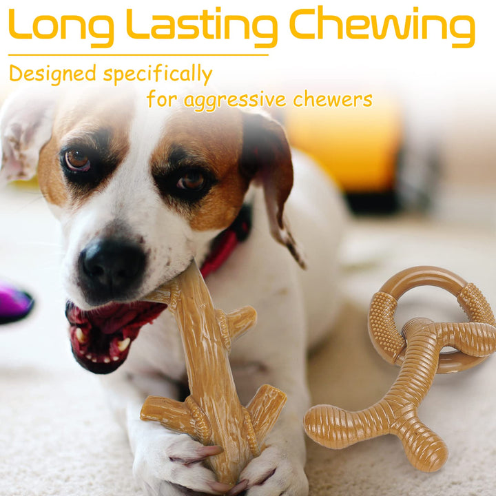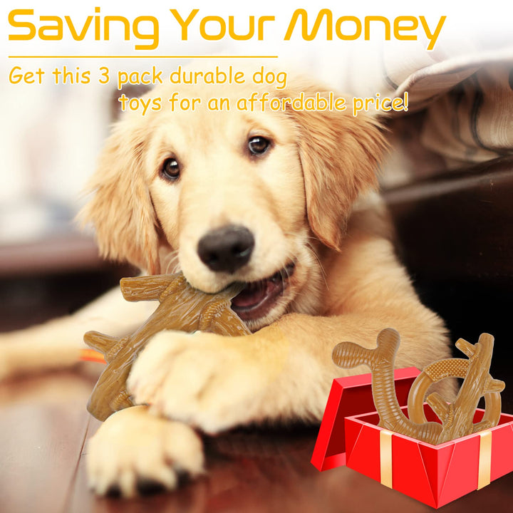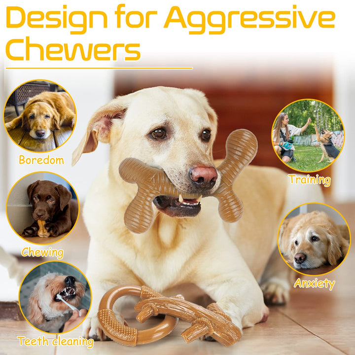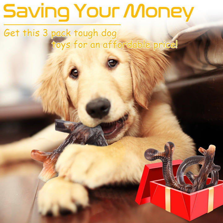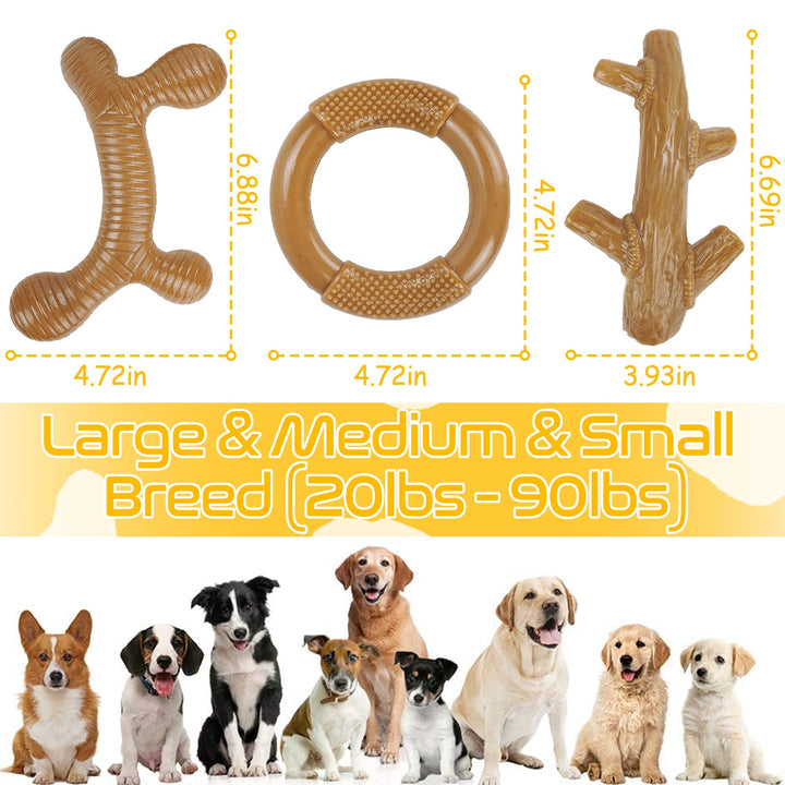 - Indestructible dog toys for aggressive chewers - These three pack dog toys for large dogs are all made of food-grade nylon, which are tougher than real bones and withstands the strong chewing of a dog. No longer have to worry about super chewer dog toys being easily broken and replaced frequently. (The marks that appear after chewing are not damaged)
