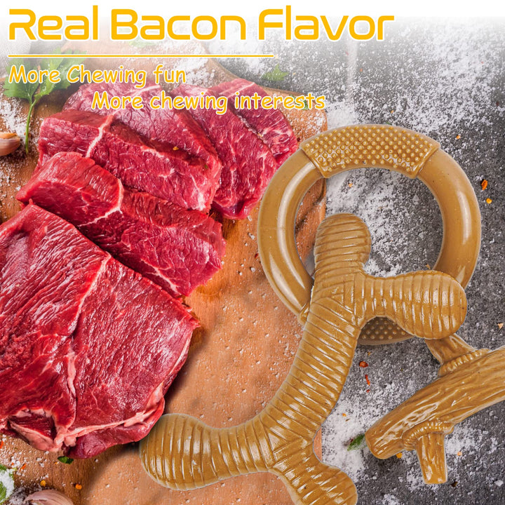 Zimtty Dog Toys, 3 Pack Indestructible Dog Chew Toys for Aggressive Chewers, Tough Nylon Real Bacon Flavor Teething Chew Toys for Large Medium Small Dog Breeds (Light Brown2)