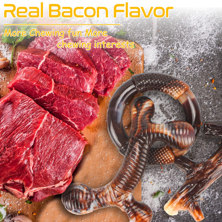 - Irresistible real bacon flavor - Smell the bacon? 100% Real Bacon Flavored Dog Chew Toys will tempt your dog to drool and satisfy the dog's natural urge to chew. Gift your dog these delicious indestructible big dog toys